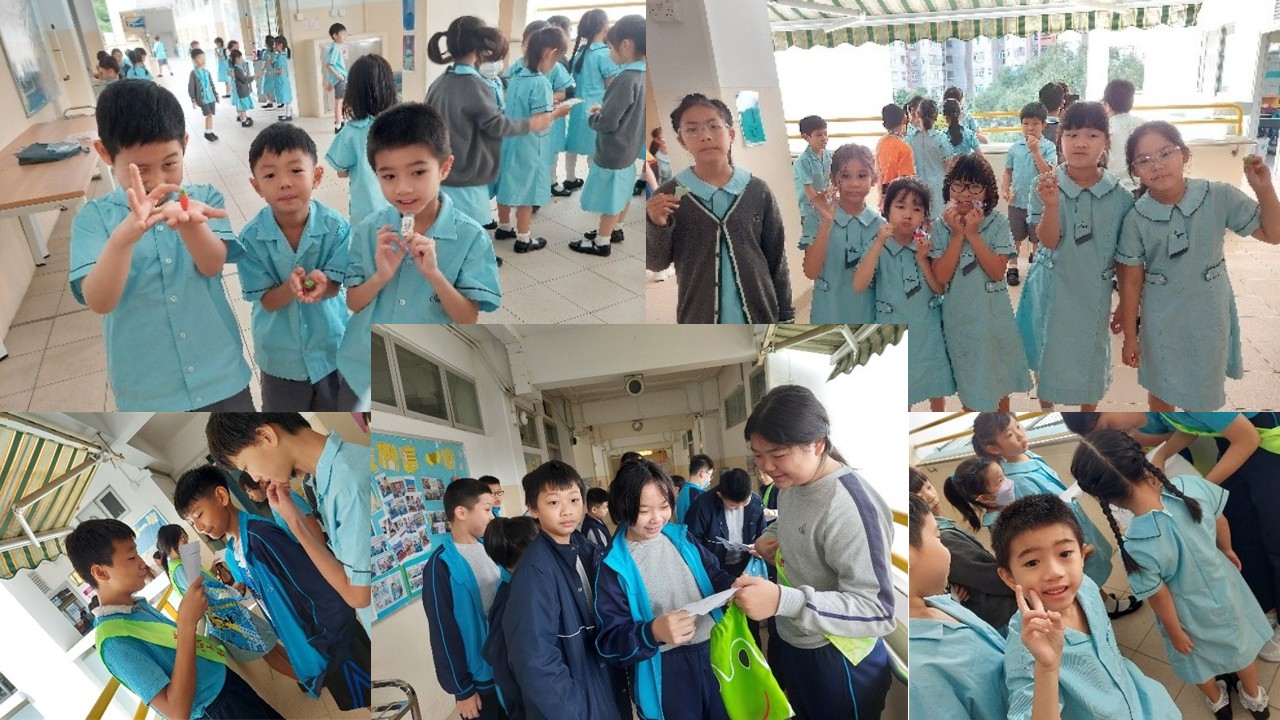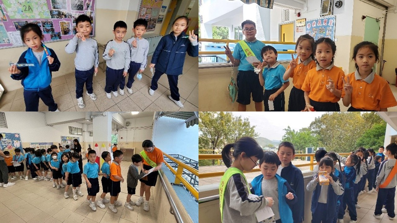 普通話大使戴上崗帶於小息時間到各樓層與同學進行談話活動,完成活動的同學可得到小禮物,同學們都踴躍參與,眼神與說話表現出自信心。