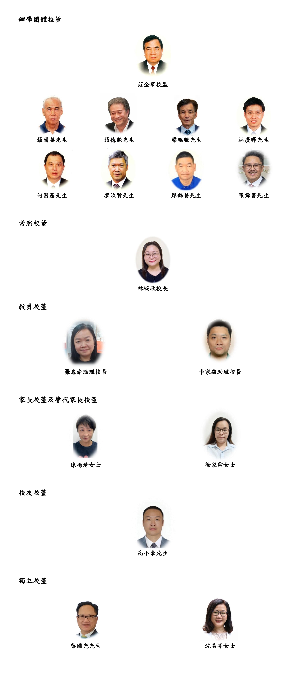 本校於2013年8月31日成立法團校董會,成員包括辦學團體代表、校長、教師、家長、校友及獨立人士。透過不同主要持份者參與決策,令學校有一個公開、具透明度及多方參與的管理架構。