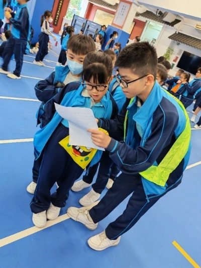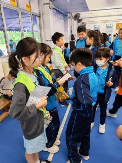 普通話大使戴上崗帶於小息時間到各樓層與同學進行談話活動,完成活動的同學可得到小禮物,同學們都踴躍參與,眼神與說話表現出自信心。